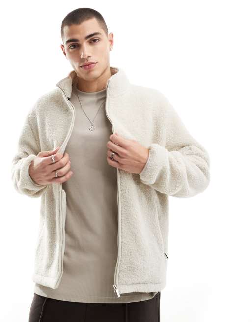 Threadbare - Borg fleece sweatshirt met rits in ecru