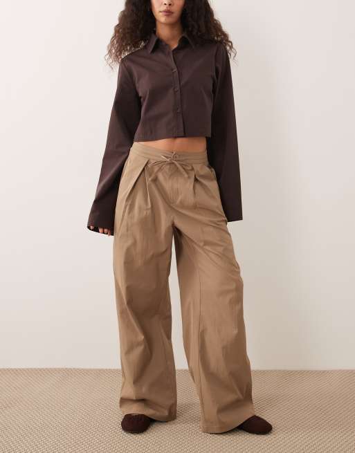 Threadbare - Broek met wijde pijpen en gestrikte taille in mokka