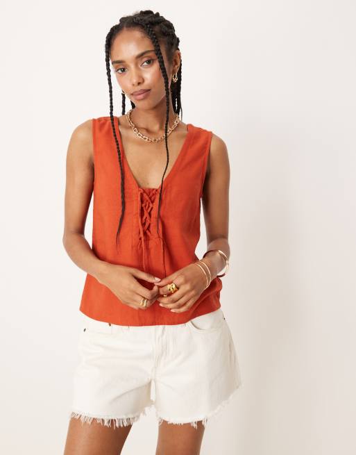 Threadbare - Camitop van linnenmix in gebrand oranje