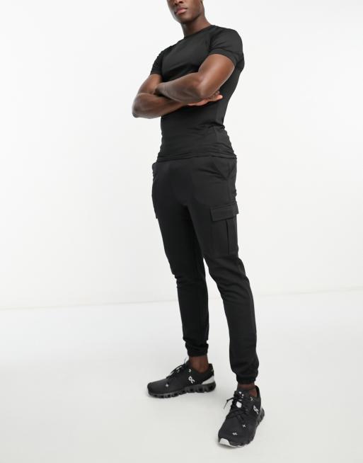 Threadbare - Fitness - Slim-fit cargo-joggingbroek in zwart