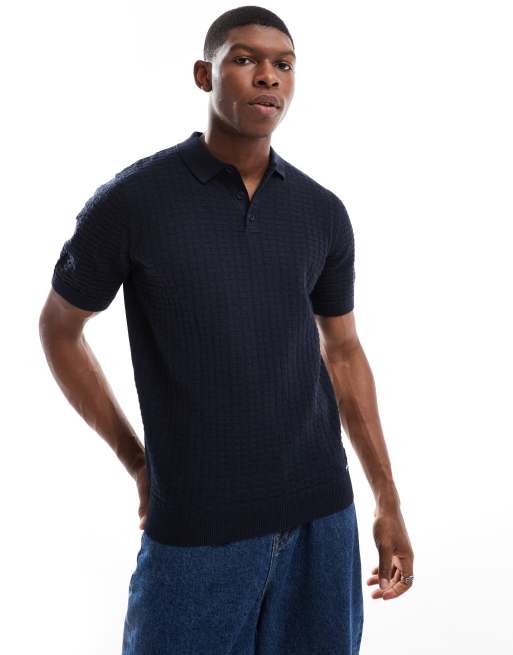Threadbare - Gebreid poloshirt in marineblauw