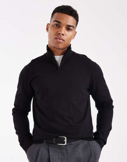 Threadbare - Gebreide trui met 1/4 rits in zwart