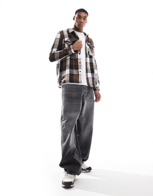 Threadbare - Geruit overshirt van zware geborstelde stof in roestbruin