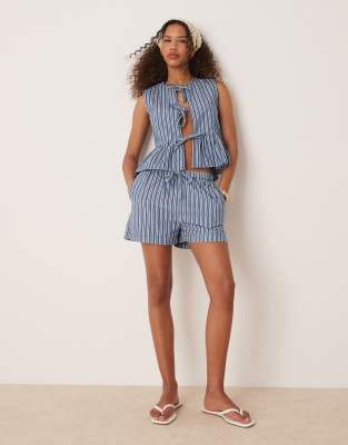 Threadbare - Gestreepte denim short met taille met trekkoord in blauw, deel van co-ord set
