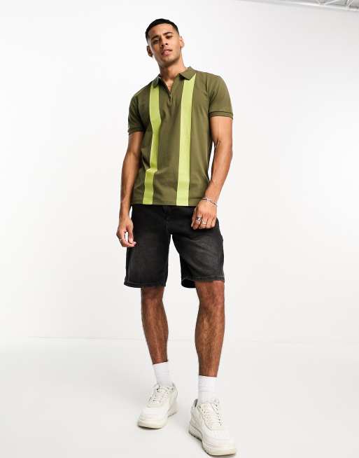 Threadbare - Gestreepte polo met rits aan de hals in kaki
