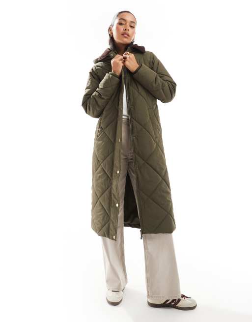 Threadbare - Gewatteerd jack met lange pasvorm contrasterende kraag in kaki