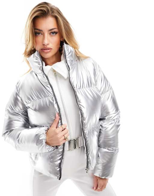 Threadbare - Gewatteerd skijack in zilver