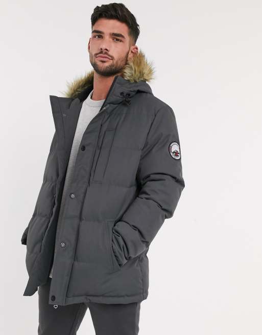 Threadbare - Gewatteerde parka met capuchon met voering van imitatiebont in grijs