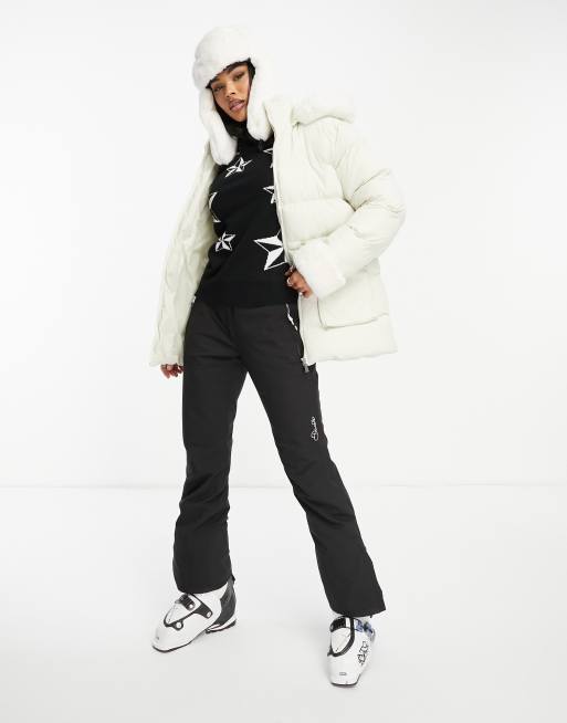 Threadbare - Gewatteerde puffer ski-jas met ingesnoerde taille, capuchon en imitatiebont langs de randen in ecru