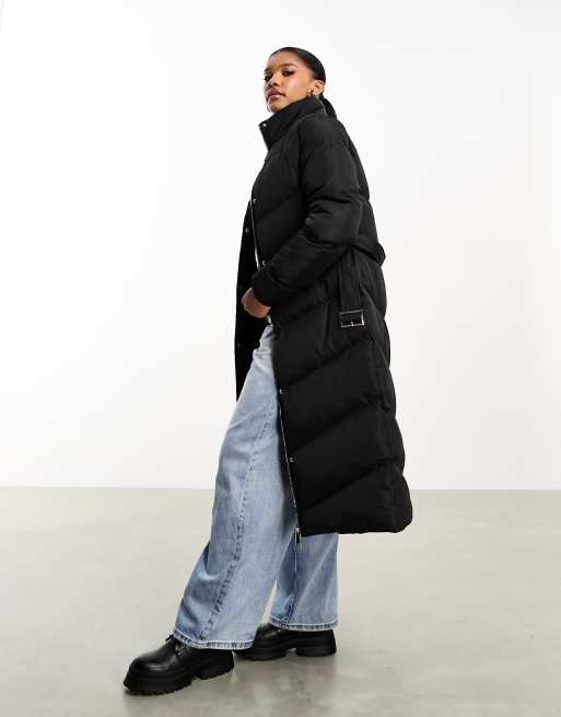 Threadbare - Holly - Lange gewatteerde jas met riem in zwart