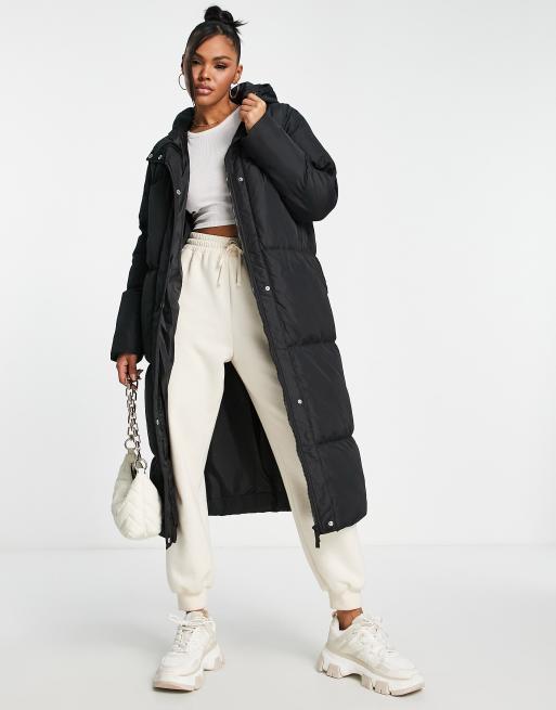 Threadbare - Jodie - Lange gewatteerde jas met capuchon in zwart
