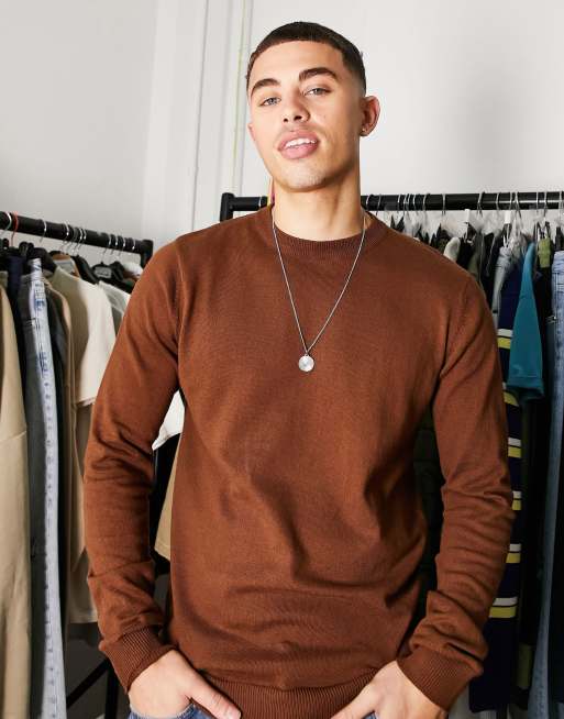 Threadbare - Katoenen trui met ronde hals in kastanjebruin