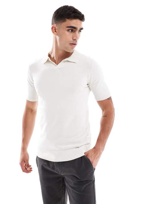 Threadbare - Katoenrijk gebreid polotop in ecru