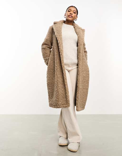 Threadbare - Maine - Oversized jas van borg met striktaille in taupe