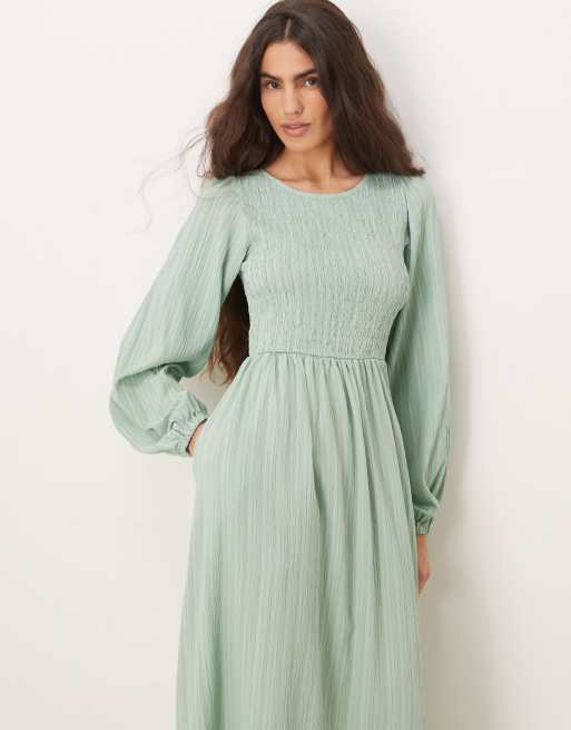 Threadbare - Midi jurk van kreukelstof met lange mouwen in mintgroen