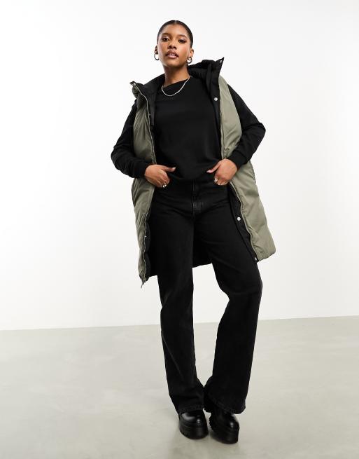Threadbare - Morticia - Omkeerbare bodywarmer met lange pasvorm in zwart en kaki