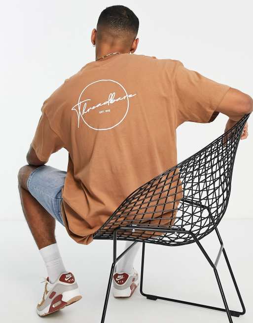 Threadbare - Oversized T-shirt met logo op de rug in bruin