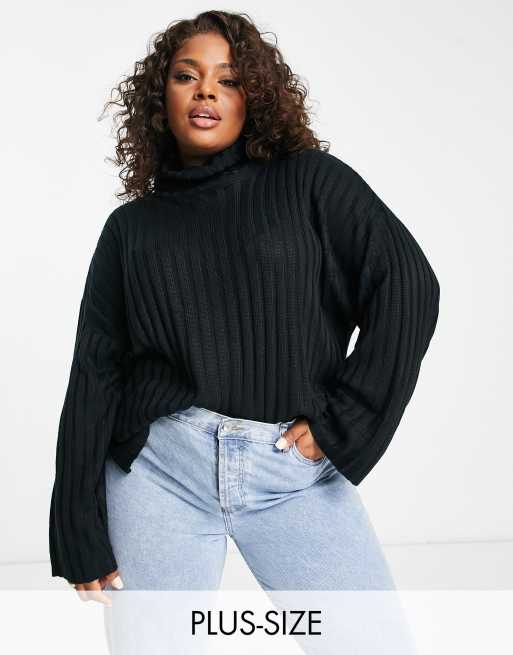 Threadbare Plus - Etta - Grofgebreide coltrui in zwart