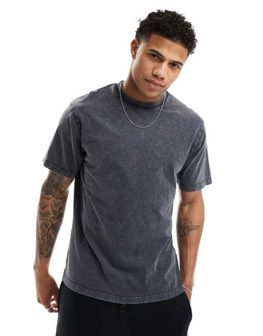 Threadbare - Ruimvallend T-shirt in antraciet met acid wash