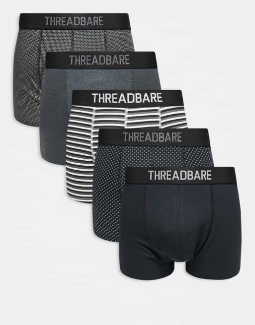 Threadbare - Set van 5 hipster boxershorts met verschillende patronen in zwart