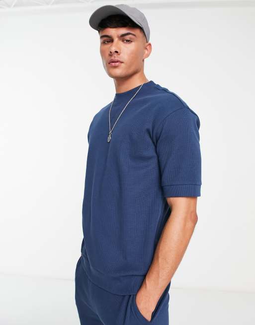 Threadbare - Sweatshirt met korte mouwen en wafeltextuur in oceaanblauw, deel van co-ord set
