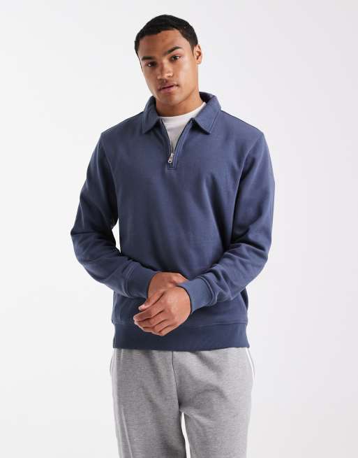 Threadbare - Sweatshirt van fleece met 1/4 rits in blauw