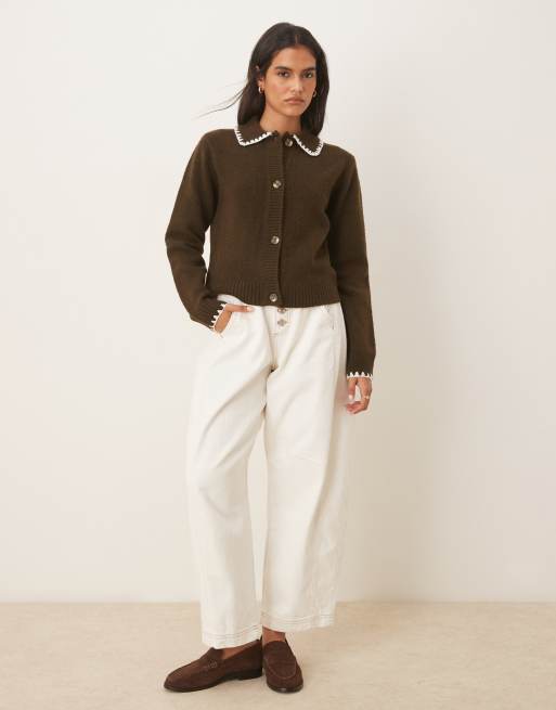 Threadbare - Vest met kraag en contrasterende stiksels in bruin