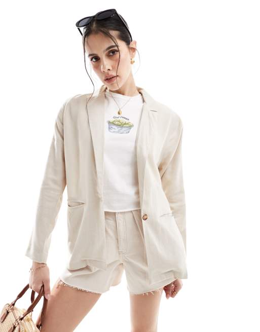 Threadbare - Zachte blazer van linnenmix in gebroken wit