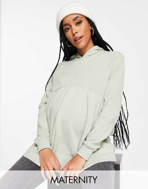 Threadbare - Zwangerschapskleding - Gesmokte hoodie in saliegroen