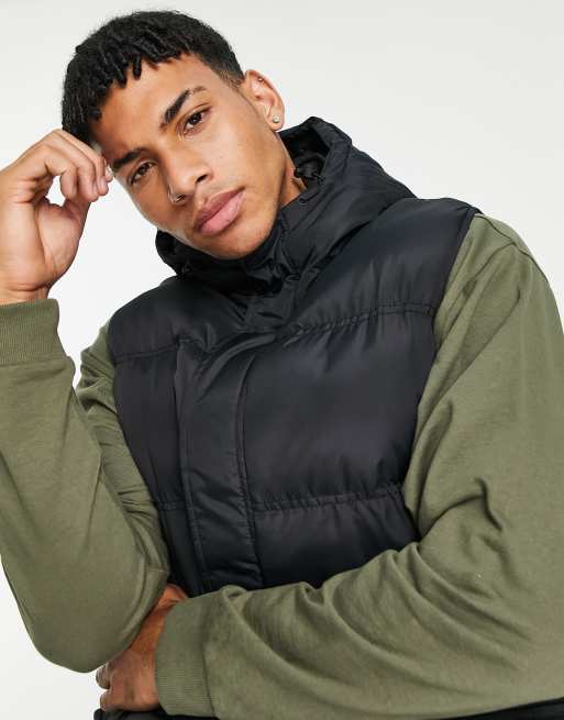 Threadbare - Zware, gewatteerde bodywarmer met capuchon in zwart
