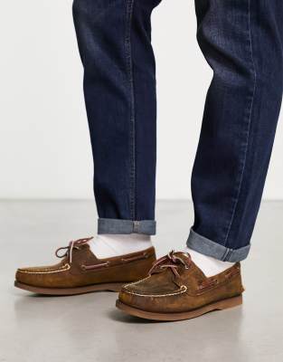 Timberland - Klassieke bootschoenen met 2 veteroogjes in bruin full grain leer