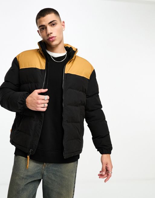 Timberland - Welch Mountain - Gewatteerd jack in zwart met schouderpas in tarwebruin