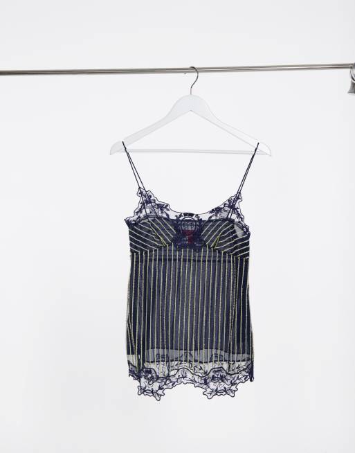 Tommy Hilfiger Collections - Camitop met krijtstreep en kanten detail in marineblauw