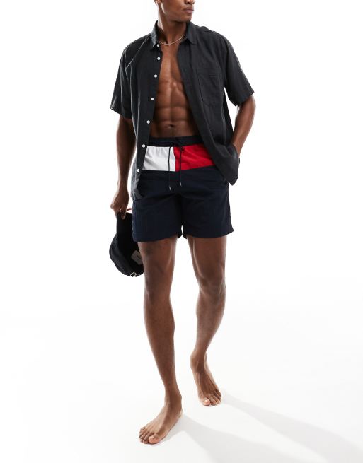Tommy Hilfiger - Core - Lange zwemshort met trekkoord en vlagmotief in marineblauw