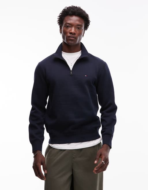Tommy Hilfiger - Essential - Hoodie met logo en 1/4 rits in marineblauw