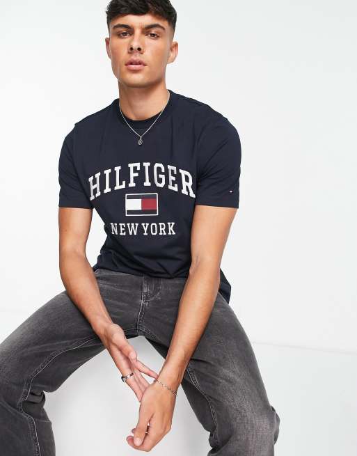 Tommy Hilfiger - Katoenen T-shirt met modern varsity-logo in marineblauw