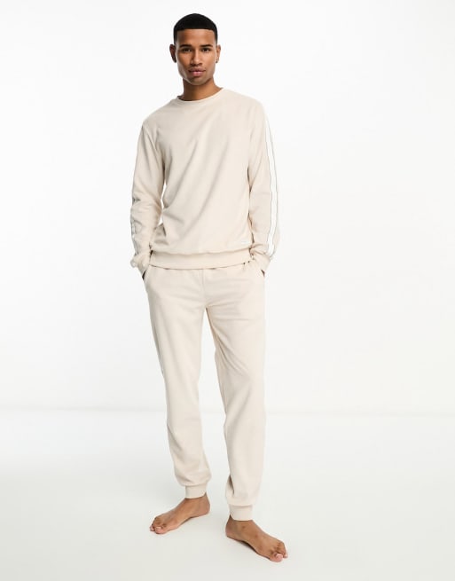 Tommy Hilfiger - Loungeset van velours met logo in beige