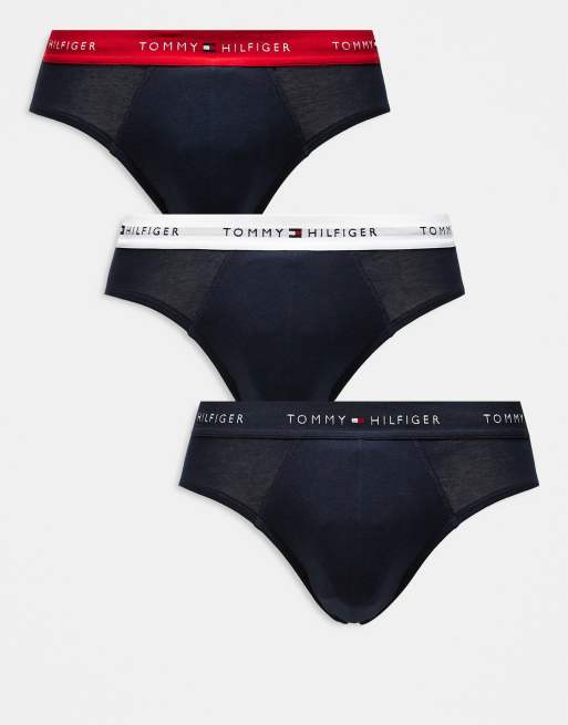 Tommy Hilfiger - Signature Cotton Essentials - Set van 3 slips in marineblauw met tailleband in wit/rood/marineblauw