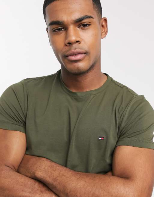 Tommy Hilfiger - Slim-fit T-shirt met stretch en vlaglogo in legergroen