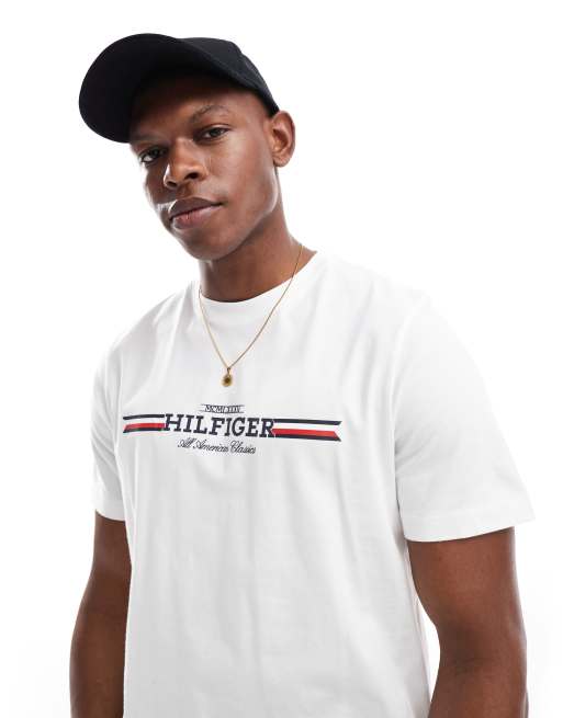 Tommy Hilfiger - T-shirt met streep op de borst in wit