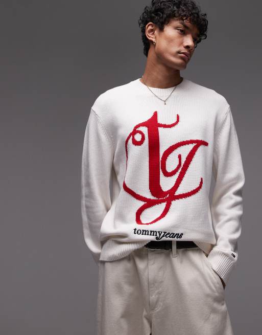 Tommy Jeans - Gebreide intarsia trui in wit en rood