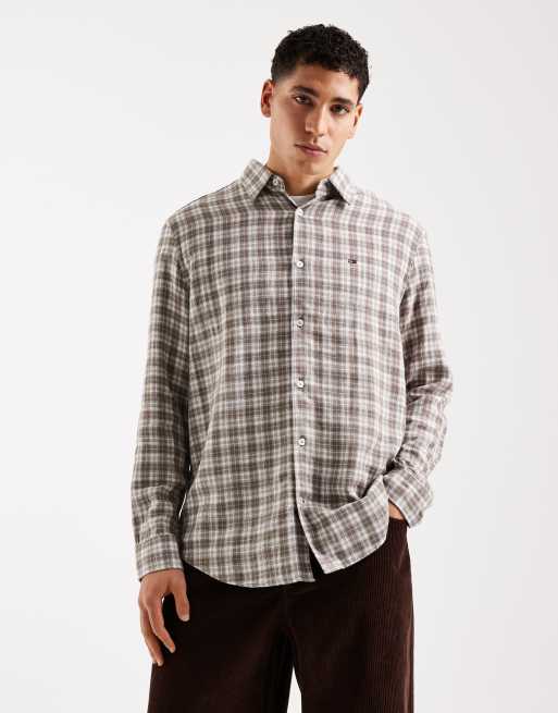 Tommy Jeans - Geruit overhemd van linnenmix in bruin