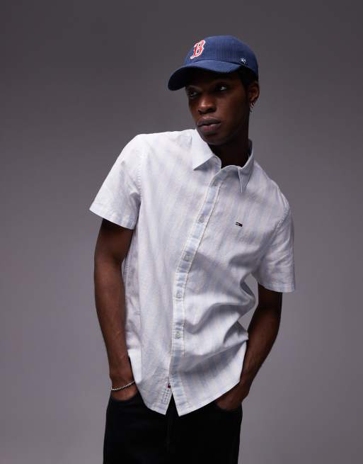 Tommy Jeans - Gestreept overhemd van linnenmix in lichtblauw en wit
