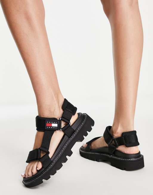 Tommy Jeans - Geweven sandalen met dikke zool in zwart
