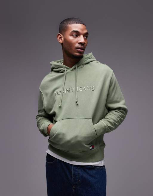 Tommy Jeans - Hoodie met logo in dezelfde tint in groen met wassing