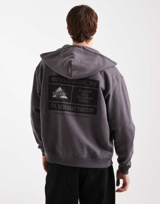 Tommy Jeans - Hoodie met rits en grafisch logo in zwart met wassing