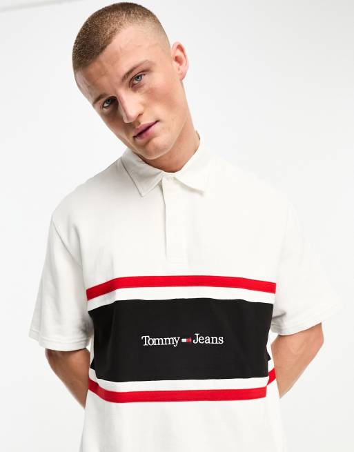Tommy Jeans - Poloshirt met lineair logo met verticale strepen in wit