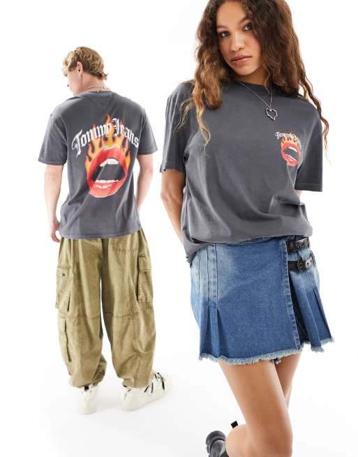 Tommy Jeans - Regular-fit unisex T-shirt met vlaglogo in kleurschakering in antracietgrijs