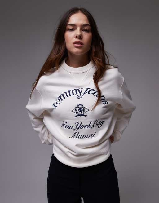 Tommy Jeans - Sweatshirt met New York varsity-print in wit
