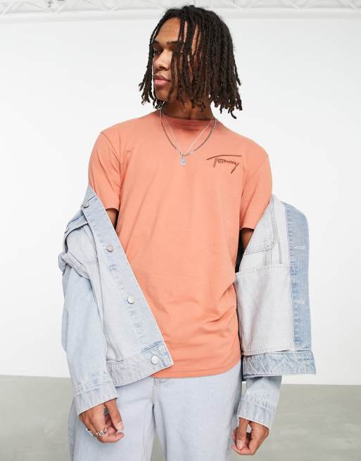 Tommy Jeans - T-shirt met klassieke pasvorm en signatuur-logo in oranje
